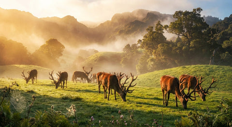 The soil, the climate, and the species determine the bio-active profile of the velvet. Discover the distinct virtues of the world's four great production centers: The New Zealand "Gold Standard" (Red Deer), the Chinese "Medical Grade" (Sika), the Russian "Arctic Adaptogen" (Reindeer), and the North American "Structural Titan" (Elk).