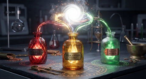 In the world of high-performance herbalism, 1 + 1 + 1 should equal 10. This is the principle of Triadic Potentiation. Discover how stacking the Holistic Base (Deer Antler Velvet), the Kinetic Driver (Power Velvet), and the Endocrine Reserve (Regen Elixir) creates a "Force Multiplier" effect that single-bottle dosing cannot achieve.
