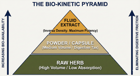 Solid supplements require energy to break down. Fluid extracts do not. Discover the Bio-Kinetic Physics of zero-friction absorption and why the "Inverse Density" of a Full Spectrum Tincture outperforms 1,000mg of oxidized powder every time.
