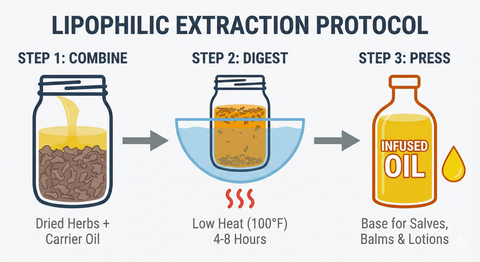 Water-based tinctures bounce right off the skin's lipid barrier. To nourish the dermis, repair tissue, or condition hair, you must speak the language of Lipids. Oil extraction (Lipophilic Infusion) captures the resins, waxes, and essential oils that water and glycerin leave behind. Discover the Top 10 Herbs for topical alchemy and the precise method to create shelf-stable oils for your lotions, balms, and salves.