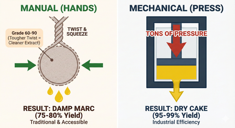 The Pour is only the beginning. When you strain your tincture, gravity does half the work. The rest of the medicine—often the strongest, most saturated part—is trapped inside the plant fibers like water in a sponge. Whether you use the traditional Cheesecloth Twist or a Hydraulic Press, the goal is the same: to recover the "Heart" of the tincture from the grip of the Marc.