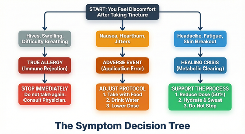 In the pharmaceutical world, a "Side Effect" is an unintended, often toxic consequence of a synthetic drug hijacking a pathway. In the world of Herbalism, we speak a different language. Most discomfort isn't a sign of toxicity; it is a sign of Application Error or Metabolic Movement. If you feel nausea, you likely need food. If you feel irritable, you may be moving stagnant energy too fast. Learn to read your body's signals not as threats, but as a dashboard for calibration.