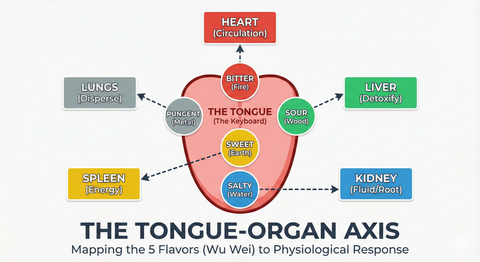 We have been conditioned to believe that medicine should taste like nothing (capsules) or like candy (gummies). This is a biological error. Taste is not a preference; it is a command. When you hide the flavor, you bypass the "Cephalic Phase"—the critical moment where your tongue signals your Vagus Nerve to prepare your stomach and liver for the chemistry arriving. In this masterclass, we decode the 5 Flavors of Chinese Medicine and explain why the "Bitter Shudder" is actually the sound of your system waking up.